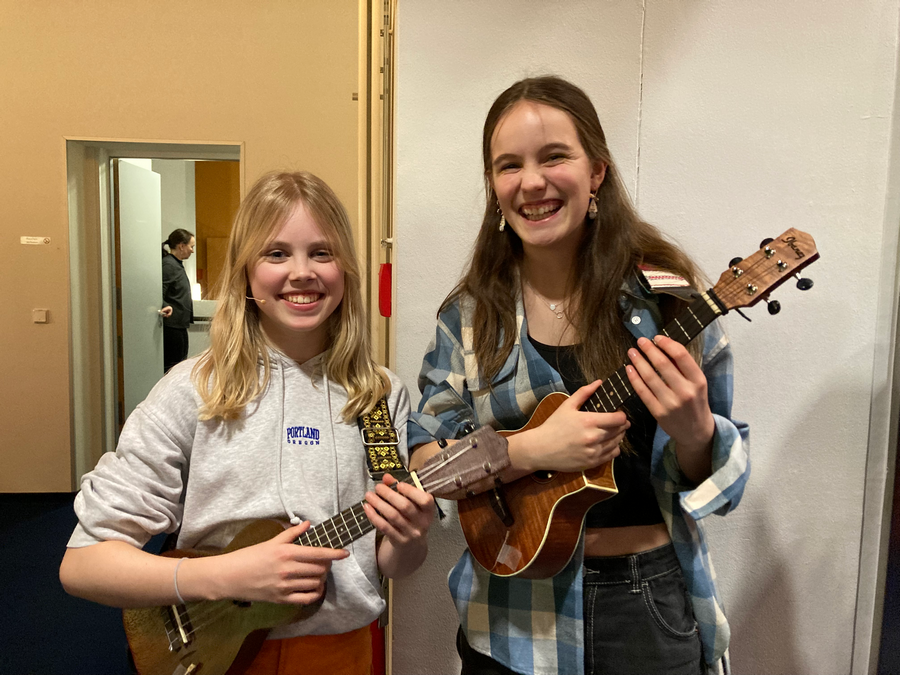 Nach einer kurzweiligen Ansprache des Oberbürgermeisters und des Intendanten der Landesbühnen folgte der Auftritt von zwei Mädchen. Mit Gesang und Ukulele präsentierten sie den Song „A million dreams“ richtungsweisend, gefühlvoll und mit erstaunlicher Bühnenpräsenz.