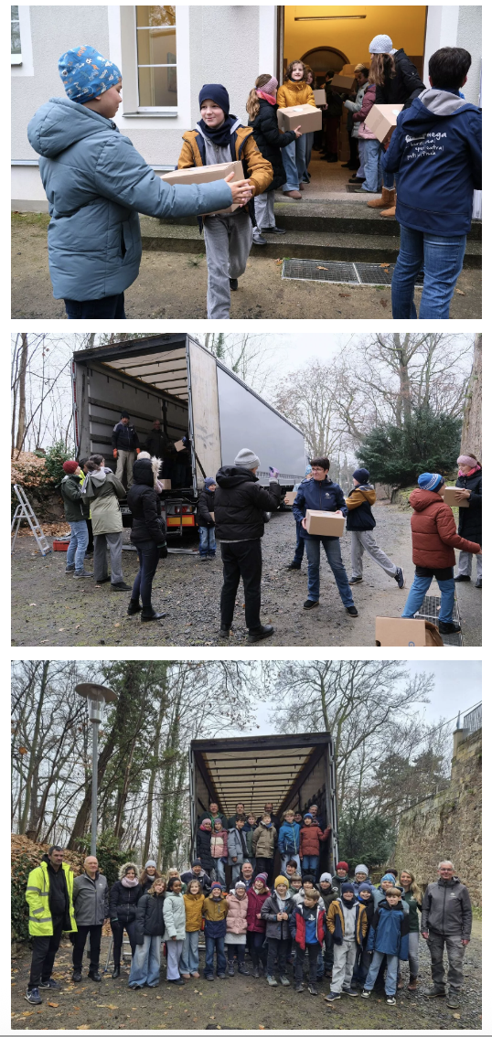 Die Kinderarche Sachsen e.V. packten mit dem Rotary und  Lions Club Radebeul und vielen anderen Helfern 2000 Weihnachtspäckchen und verluden sie am letzten Freitag, dem 5.12. Dabei half die Klasse 5a des Lößnitzgymnasiums.