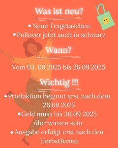 Auf euch warten eine neue Farbe bei den Pullovern und tolle neue Tragetaschen.