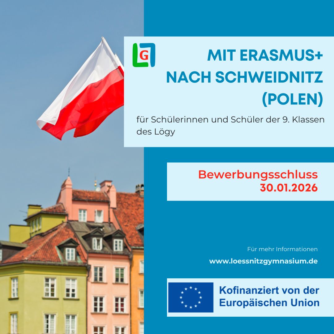 Im Rahmen des Erasmus+ Programms haben interessierte Schülerinnen und Schüler der 9. Klassen die Möglichkeit, an einem spannenden englischsprachigen Austausch nach Schweidnitz (Świdnica) in der Nähe von Breslau (Wrocław) teilzunehmen. Thema des Austauschs Im Mittelpunkt steht das Thema Wasser: Wasseraufbereitung, Wasserproben, Umwelt- und Nachhaltigkeitsfragen, ein Besuch des Hydropolis…