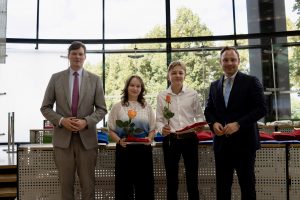Die Preisverleihung war auch sehr spannend. Wir trafen uns mit allen anderen Preisträgern aus ganz Sachsen im Plenarsaal des Sächsischen Landtages. Nach einer musikalischen Eröffnung wurden die Preisträger aufgerufen, und ihnen wurde vom Landtagspräsidenten Alexander Dierks sowie vom Kultusminister Conrad Clemens persönlich gratuliert. Dazu gab es neben der Urkunde ein kleines Dankeschön. Zum Schluss konnten wir uns am Buffet stärken.