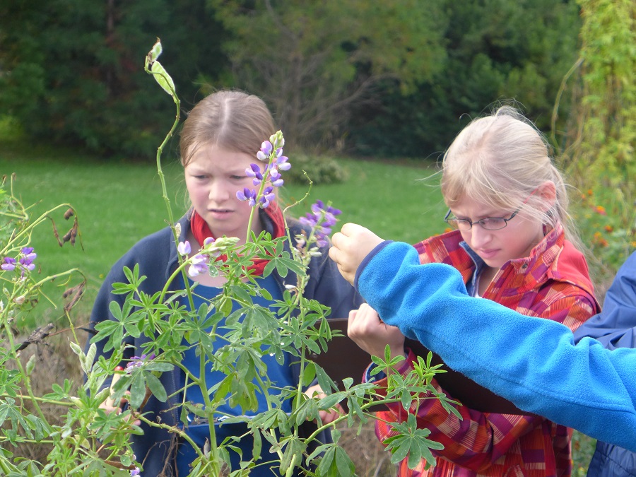 Anschließend wurden wir in neun Gruppen mit je drei Personen eingeteilt und auf eine große Fläche mit Samenpflanzen geführt. An manchen Pflanzen hing eine Nummer. Alle Pflanzen mit Nummern mussten der Reihe nach bestimmt werden. Die Ergebnisse trugen wir in die Tabelle ein.