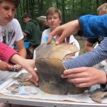 Der Tag begann damit, dass wir beim Aufwachen merkten, dass es in der Nacht geregnet hatte – was im Wald wesentlich unangenehmer ist, als in der Stadt. Da alles nass war, fiel das Frühstück recht trist aus. Am Vormittag beschäftigten wir uns damit, diverse Karten- und andere Gesellschaftsspiele zu spielen. Als uns irgendwann langweilig wurde, sind wir zum Hauptzelt gegangen und haben Urnenscherben gepuzzelt, was viel schwieriger ist als es sich anhört, denn es gibt dutzende verschiedene Scherbenfarben, -texturen, -dicken, -krümmungen, und zu guter Letzt kommt noch dazu, dass manche Teile einfach noch nicht gefunden bzw. unvollständig sind. Zu acht ging es allerdings doch recht zügig und nach nicht allzu langer Zeit hatten wir dann schon ein ziemlich großes Stück einer erstaunlich großen Urne zusammengepuzzelt. Irgendwann wurde dann das Mittagessen geliefert und wir haben uns erst einmal eine Pause gegönnt. Danach hatten ein paar Leute aus unserer Gruppe keine Lust mehr auf Puzzeln und setzten sich zu den anderen „Campbewohnern“ und haben Spiele gespielt, was in einer so großen Gruppe erstaunlich viel Spaß machte. Am Nachmittag haben wir also entweder weiter gepuzzelt oder Spiele gespielt. Nach einiger Zeit haben wir Lust darauf bekommen zum Badesee baden zu fahren, es war zwar ziemlich kalt, aber auch erfrischend. Als wir zurückkamen gab es auch schon Abendessen – Chickennuggets, die eine Gruppe anderer „Campbewohner“ gemacht hat. Danach haben wir uns erst mal in unsere Zelte gesetzt und uns ausgeruht. Gegen 23:00 haben wir noch eine kleine Nachtwanderung durch den Wald gemacht, die uns zu einem der Seen geführt hat. Da der Mond sehr hell war, war das ein sehr schöner Ausflug. Danach war es Zeit schlafen zu gehen, damit wir am nächsten Tag fit für die Rückreise waren.