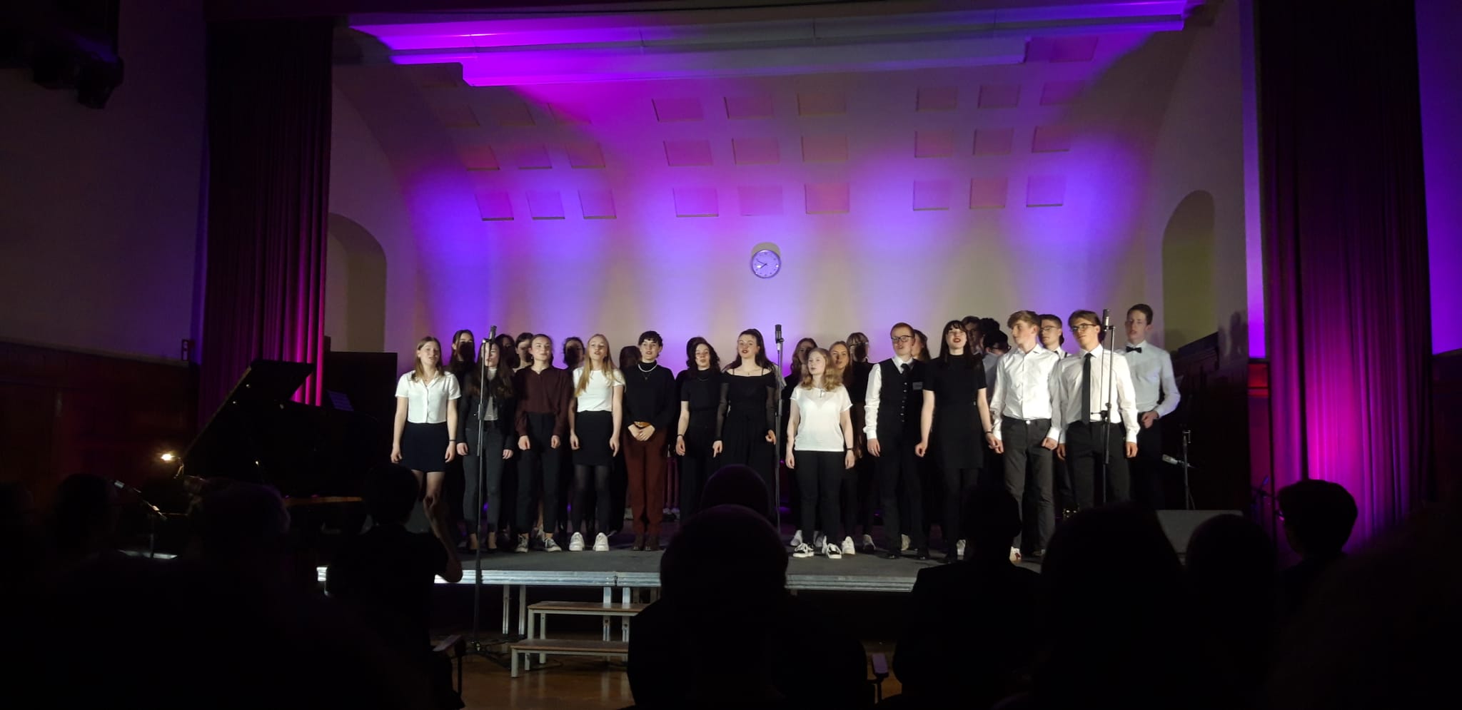 Am Abend des 08. Aprils füllte sich die Aula, die Lichter gingen aus und das Konzert begann. Doch es war nicht nur irgendein Konzert: Es war die Abi-Finanzierung und Verabschiedung des jetzigen 12er Jahrgangs. Nach den nun anstehenden Abitur-Prüfungen werden viele talentierte Musiker:innen die Schule verlassen und so gab es noch einmal die Chance auf der Bühne zu stehen und zu zeigen, was man kann.