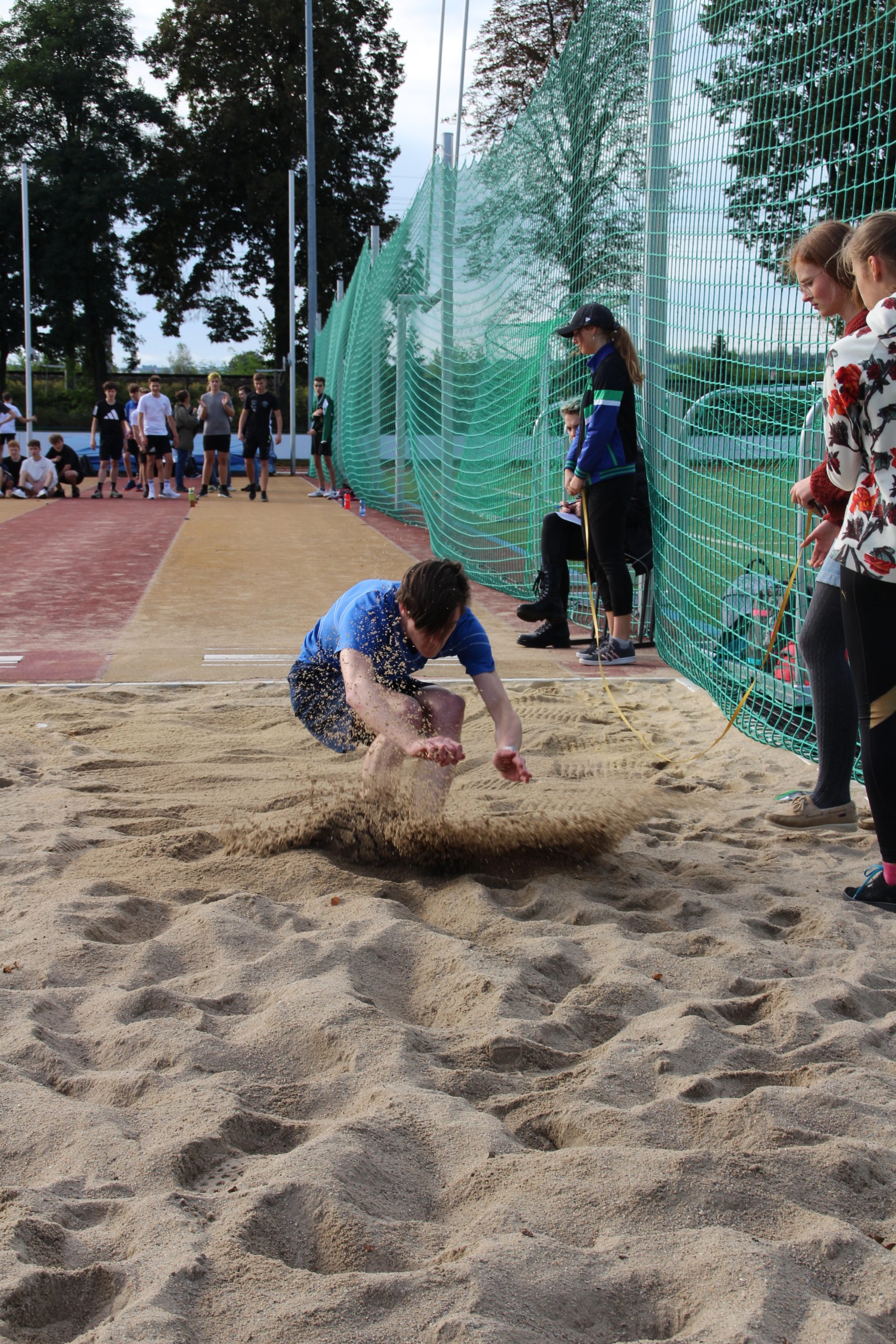 Bis zum Schluss wurde gezittert und bereits Tage vorher jede freie Minute die Wetter-App gecheckt, zumindest von Seiten des Sportkollegiums, ob das diesjährige Leichtathletiksportfest auch wirklich stattfinden kann. Es wäre nicht das erste Mal, dass es „ins Wasser fällt“ oder wegen Regen abgebrochen werden muss. Doch in diesem Jahr war der Wetterfrosch endlich auf unserer Seite und die Jahrgangsstufen 5 bis 10 konnten sich im leichtathletischen Dreikampf (Sprint, Weitsprung und Werfen/Stoßen) untereinander messen.