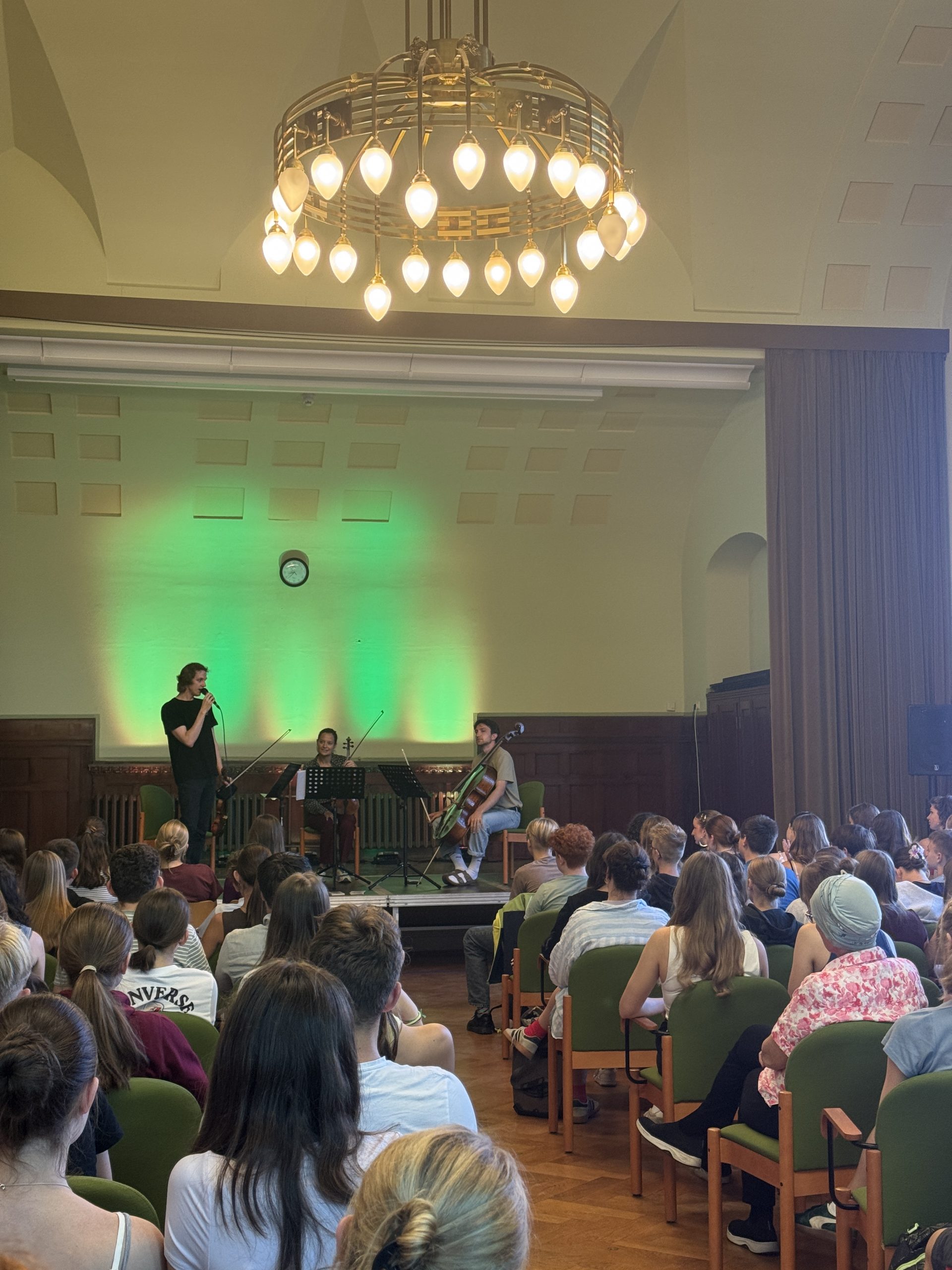 Die drei Künstler präsentierten ein eindrucksvolles Streichkonzert, das den Vormittag mit wunderbaren Klängen eröffnete. Neben den musikalischen Darbietungen nahmen sich die Musiker Zeit, Fragen unserer Lernenden zu beantworten und spannende Einblicke in die Welt der klassischen Musik zu geben.