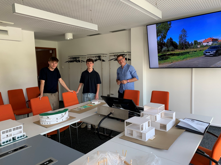 Schülerinnen und Schüler der 11.(jetzt 12.) Jahrgangsstufe des Lößnitzgymnasiums stellten Architekturmodelle vor, wie sie sich einen Erweiterungsbau des Lößnitzgymnasiums am Moritz-Garte-Steg in Radebeul vorstellen.