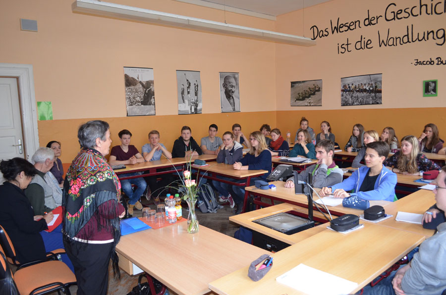 Anlässlich des 70. Jahrestages der Befreiung des Kriegsgefangenenlagers Zeithain am 23. April waren in unserer Schule ehemalige russische Kinderhäftlinge zu Besuch, um den Schülern der 10. Klassen ihre Geschichte zu erzählen.